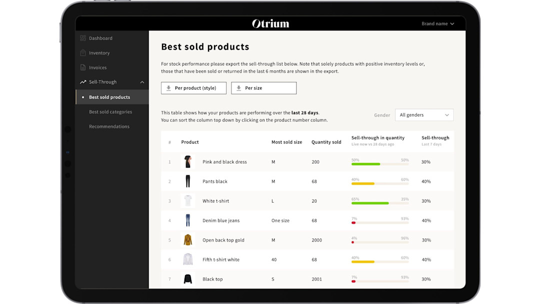 Otrium’s data-driven replenishment feature makes stock management incredibly easy for brands. It visualises in real-time which products are performing well, shows sell-through percentages in terms of style and size and allows brands to apply over 20 different reporting configuration options, including time periods and geography.