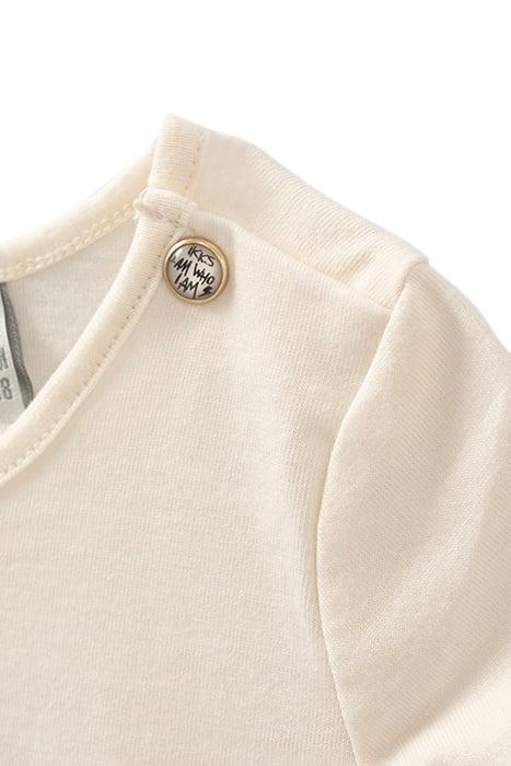 This ecru organic cotton baby’s vest top plays with rock codes! "Born to ride" without forgetting pretty details, thanks to a bow on the left shoulder.