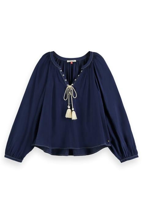 BALLOON SLEEVE LACE UP TOP NAVY BLUE