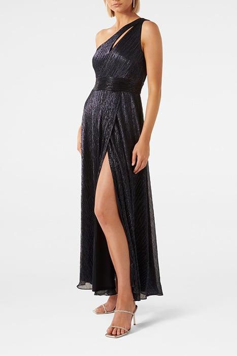 BILLIE ASYMM PLISSE MIDI DRESS NAVY