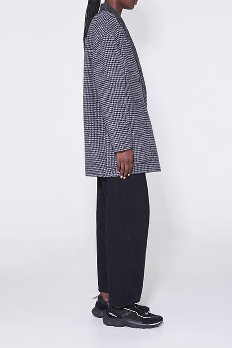 Checked Double-Face Coat In Black. A-Line Model, Long Sleeve And Lapel Collar.