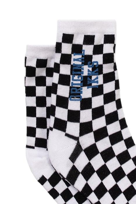 BLACK CHECKERBOARD/WHITE STRIPED SOCKS