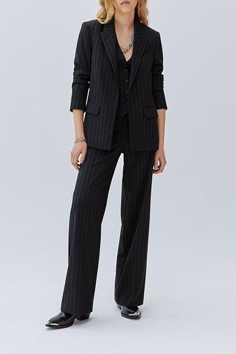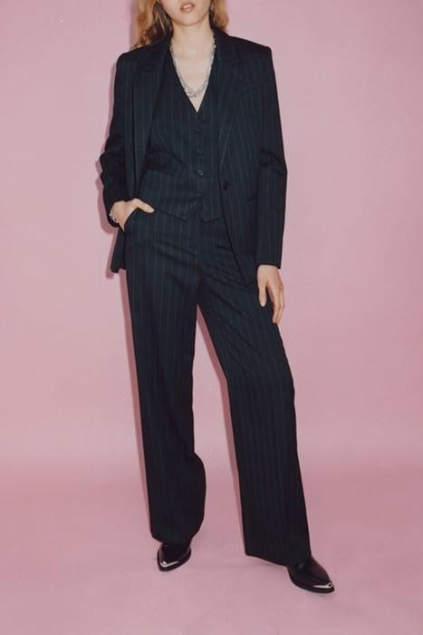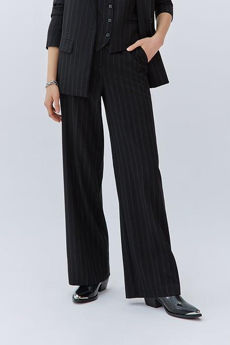 BLACK HIGH-WAIST WIDE-LEG PINSTRIPE TROUSERS