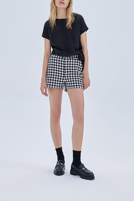BLACK HOUNDSTOOTH MOTIF TWEED-LOOK SHORTS BLACK