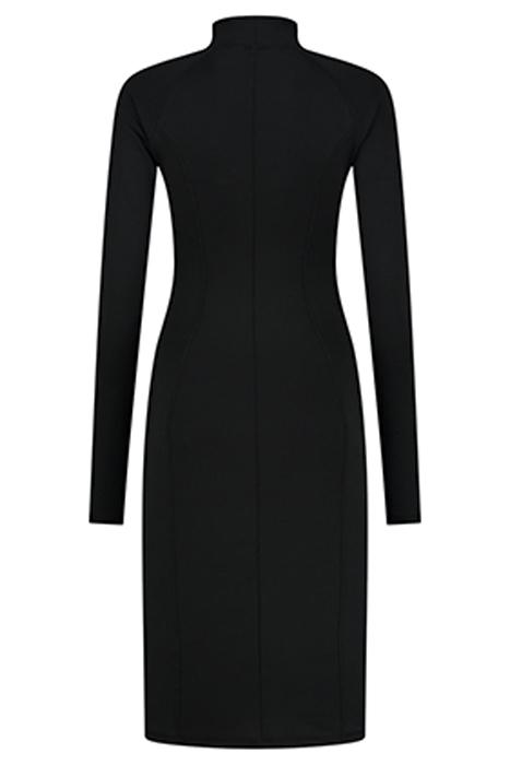 Cut from a soft and stretchy spandex blend, this long-sleeved dress has a futuristic bodycon style plus coverlock stitching to enhance the sporty yet feminine silhouette. Smooth and slim-fitting with a classic high collar, this figure hugging dress also has a screen print logotype across the chest.