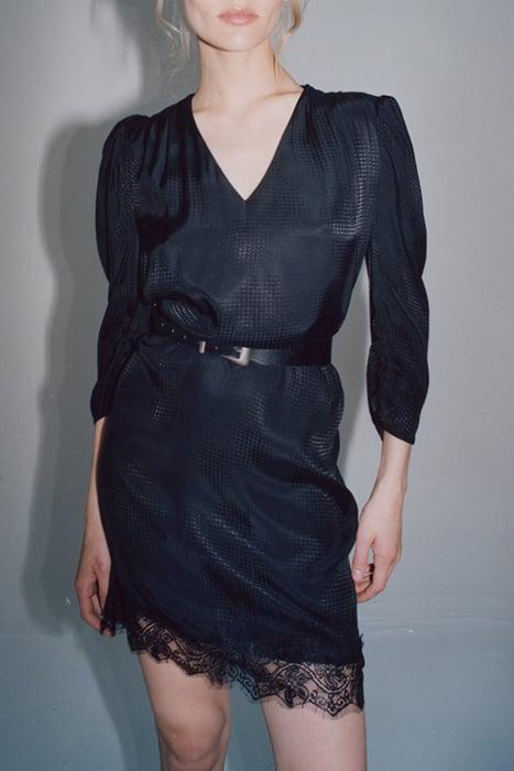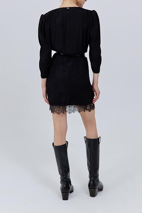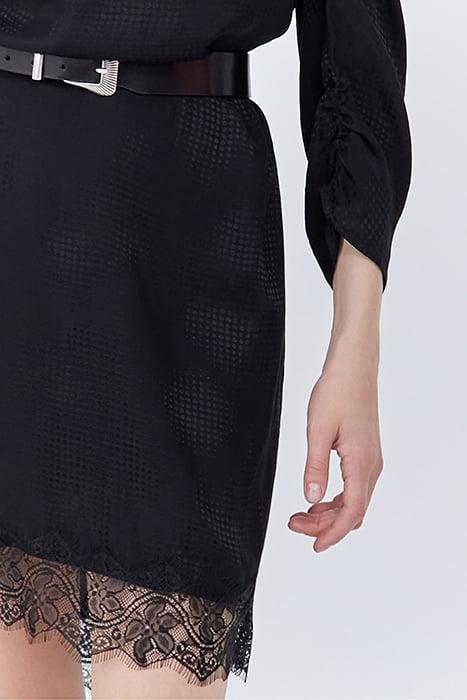 BLACK OPTICAL POLKA DOT MOTIF JACQUARD DRESS