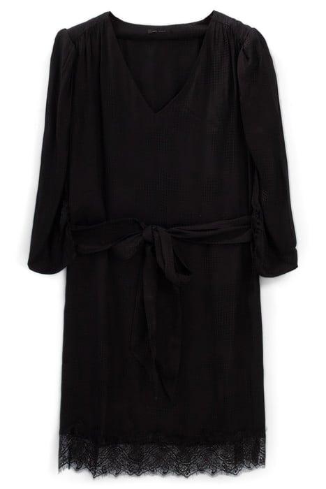 The Glam’ Touch? A Wide Band Of Black Lace. The Rock Touch? Optical Polka Dot Motif Jacquard. The Little Black Dress Stick Has Tricks Up Its Sleeves.