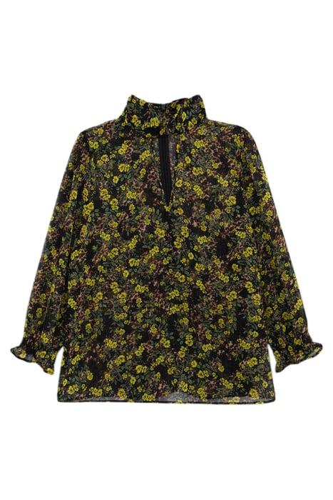 BLACK RECYCLED BLOUSE WITH FLORAL LEOPARD PRINT