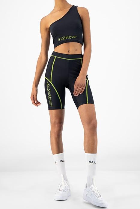 Get the athleisure look with this one-shoulder crop top with medium support for low impact activities like yoga. In a flattering shade of black with contrast neon yellow Daily Paper branding, this will ensure you're the best-dressed person at the studio. Pair with matching Rebike shorts for a vivid activewear look.