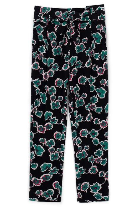 BLACK XL FLORAL FLOWING BELTED TROUSERS