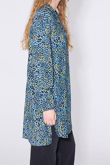 BLUE LEOPARD PRINT FLOWY BLOUSE