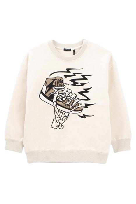 BOYS’ ECRU SWEATSHIRT WITH TRAINER-SKELETON XL EMBROIDERY