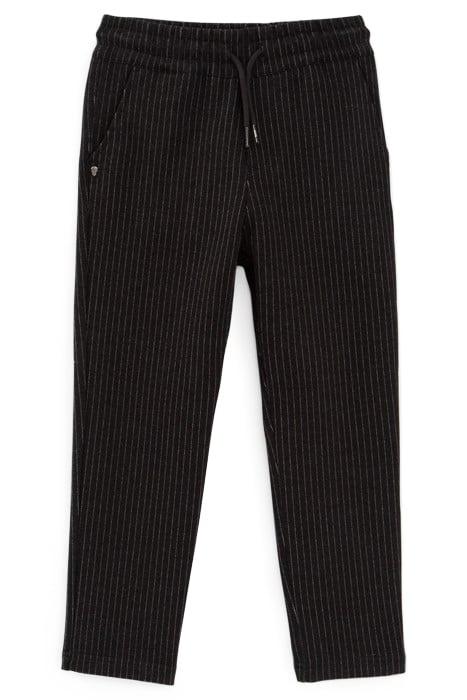 The Boys’ Joggers Are Even More Rock In Charcoal Grey With Pinstripes And A Skull-Shaped Rivet.