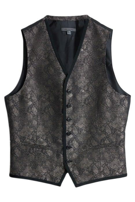 BUTTON FRONT CLOSURE VEST WITH SATIN TAP ALMOND