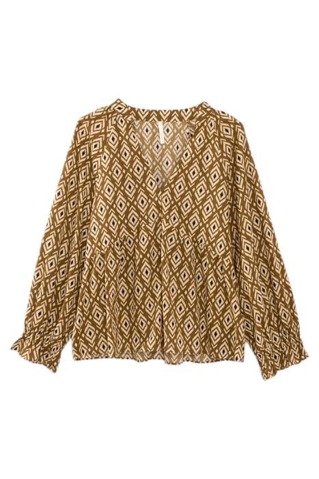 CAMEL ETHNIC BOHO PRINT BLOUSE