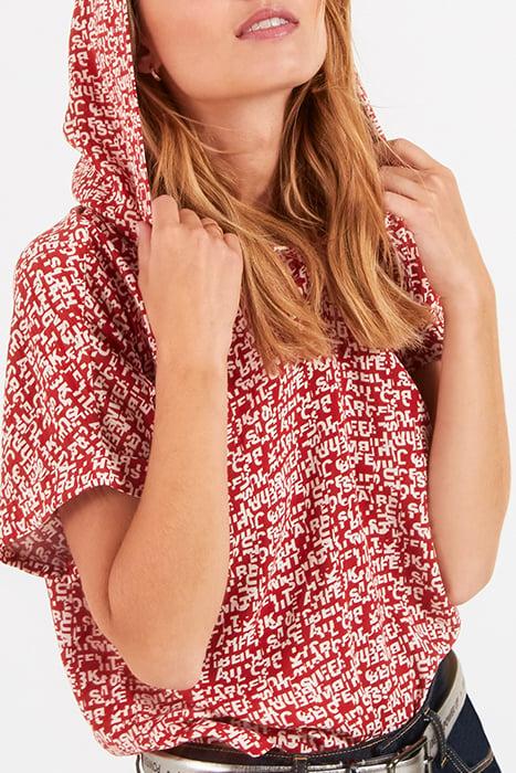 With a hood and mini-letter print, this top stands up for sportwear codes. Offset it in the city with a fitted skirt or trousers.