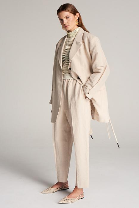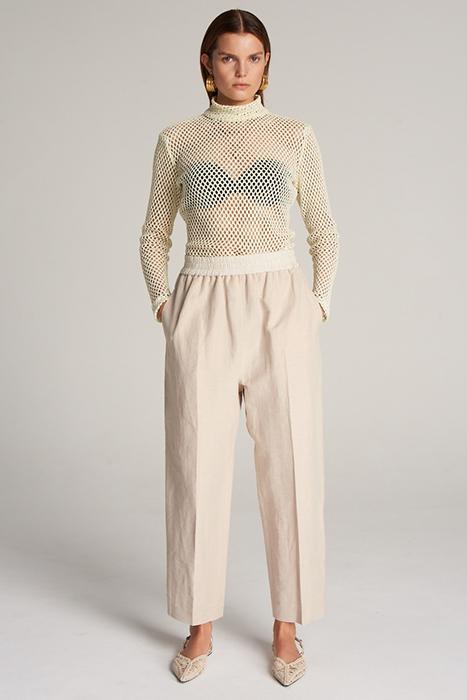 Frenken Cave Beige Trouser With A White Elastic Waistband And Side Pockets. Accented With Softly Pressed Creases For The Perfect Fitting.