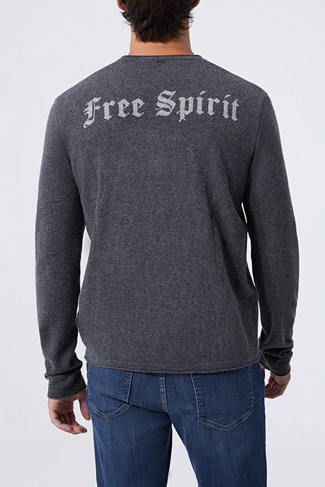 CHARCOAL KNIT SWEATER WITH SLOGAN ON BACK ANTHRACITE