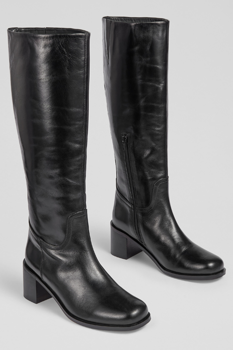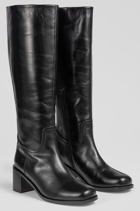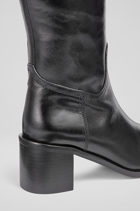 Imagine Striding Through Cobblestone Streets With An Air Of Effortless Elegance. The Claude Knee Boots, Crafted From Black Italian Calf Leather, Feature A Stylish Block Heel And A Sophisticated Rounded Square Toe. Perfectly Versatile, Pair Them With Tailored Trousers For A Smart Look Or With A Flowing Midi Skirt For A Casual Charm.