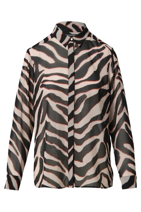 Closure: concealed button placket; Collar: shirt collar; Fabric: chiffon; Fit Overall: regular fit; Pattern: animal pattern; Print: all over print; Sleeve: cuffs. long sleeves