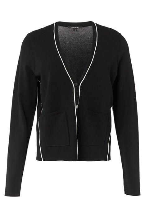Details: Contrastdetails Eigenschap: Zacht Hals: V-Hals Materiaal: Viscosemix Mouwen: Lange Mouwen Pasvorm: Getailleerd Sluiting: Knopen Stof: Fijn Breisel Voering: Ongevoerd Warmteklasse: Licht Warm Zak: Opgestikte Zak
