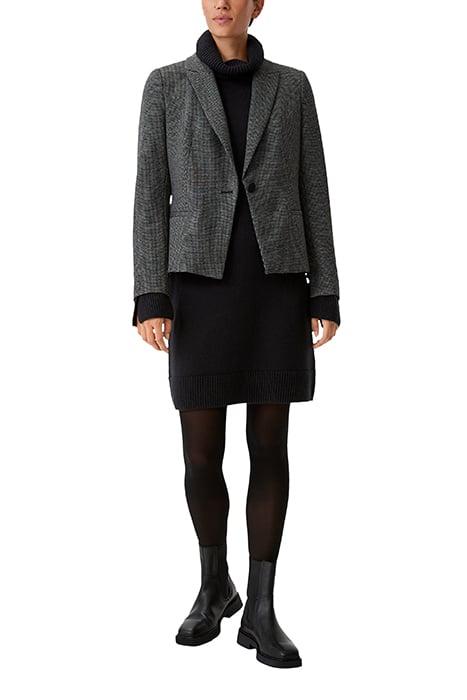 Knit Dress Met Opstaande Kraag, Lange Mouw Met Split