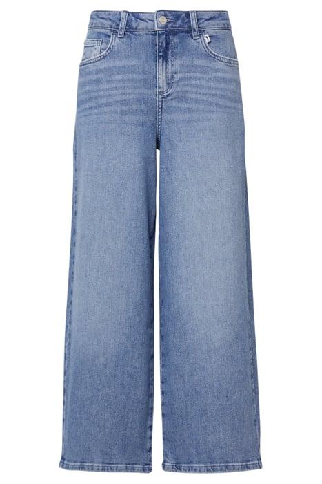 Band: Met Riemlussen Bandhoogte: High Rise Beenlengte: Cropped Broekmodel: Loose Fit Eigenschap: Elastisch Finish: Wassing Gelegenheid: Casual Materiaal: Katoen Pijpen: Wide Leg Sluiting: Knoop, Ritssluiting Stijl: Casual Stof: Denim Voering: Katoenen Voering Zak: 5-Pocket-Model Zoom: Met Naad