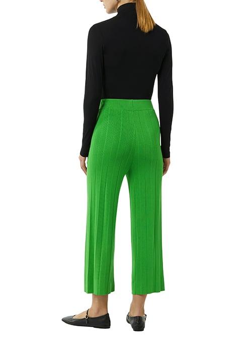 Pants: Waist: Elastic Waistband, Waist Height: High Rise, Leg Length: Culotte, Feature: Fine, Elastic, Fit: Flared, Leg: Wide Leg, Fabric: Fine Knit, Rib Fabric, Lining: Unlined.