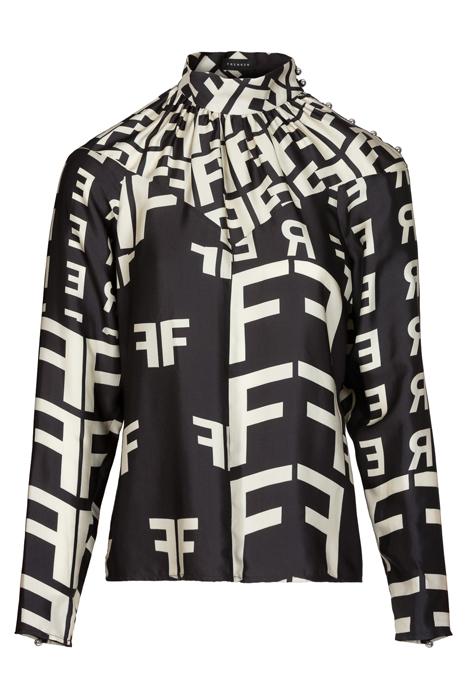 Delicate Viscose Satin Blouse, With Exclusive Frenken Print. This Blanded Top Has Turtle Neck And Cuff Finishing.