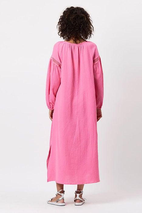 The Long Airy D6Chelsey Maxi Dress In Pink Glow Has An Easy Silhouette For Any Outings. Crafted From A Cotton Double Cloth With Responsible Cotton, It Has An Oversized Fit With Dropped Shoulders With Bohemian Details. The Dress Is Designed With A Round Neckline And Comes With A Matching Tie-Belt To Create A Feminine Silhouette. It’S The Perfect Slip-On-And-Go Choice After A Long Day At The Beach.