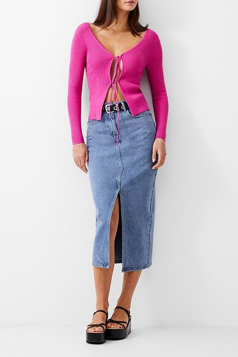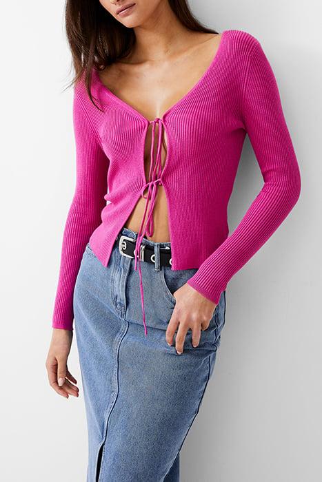 DOUBLE TIE RIB CARDIGAN WILD ROSA