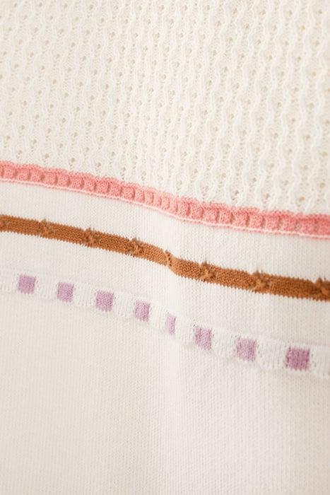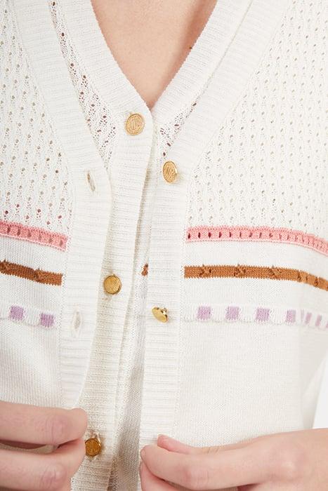 ECRU KNIT FINE-STRIPE CARDIGAN