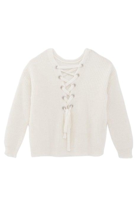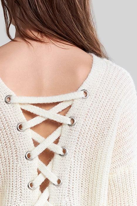 ECRU KNIT XL SWEATER WITH LACED BACK