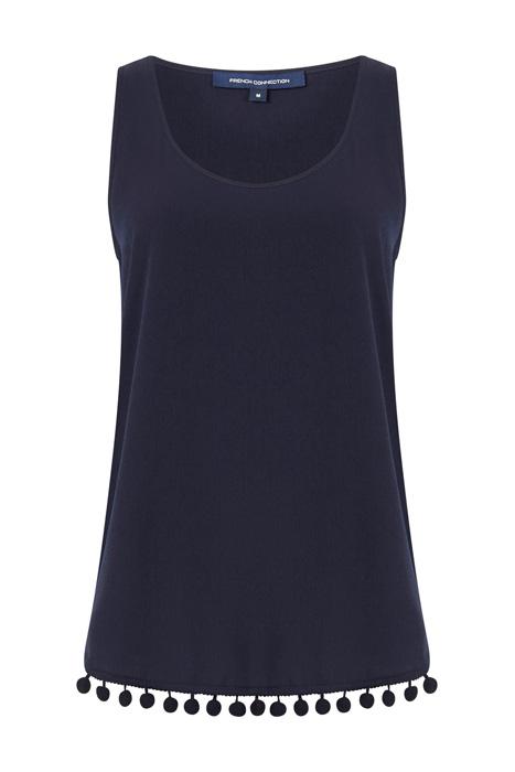 ESO CREPE LIGHT POM POM VEST TOP UTILITY BLUE