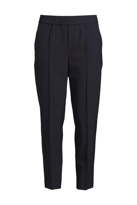 A loose fit pant w/ tapered leg and elastic inside waistband . Detailed pin tucks at front panel. Grosgrain detail at fro nt pockets. Our favourite poly/viscose/spandex fabric--now i n a recycled blend!
