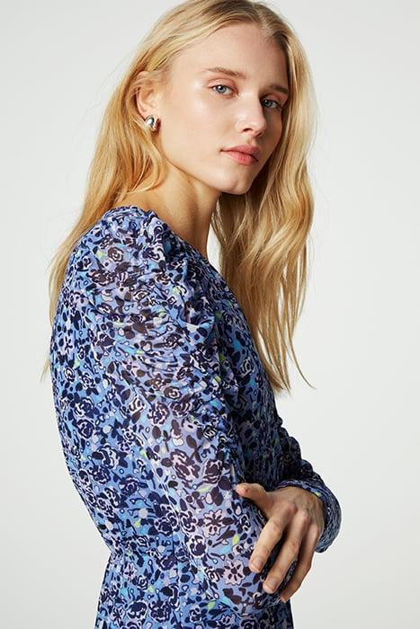 Fitted Dress With V-Neck And Light Puff Sleeves. Flake Dress Has All Over 'Violetta Clueless' Print And Is Made Of Mesh (Recycled Polyester): Stretchy, Creaseproof And Conscious. Discover How Many Bottles Are Recycled To Make Your Garment Inside The Care Label.