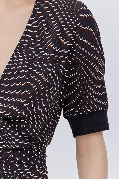 The Psychedelic Print On A Garnet Background Is The Theme’S Star Motif To Set The Tone Of This Knee-Length Dress. The Wrap Style Enhances Your Décolleté.