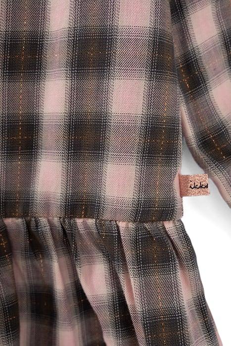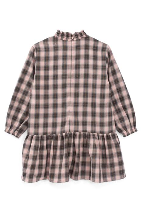 GIRLS’ PINK WITH KHAKI CHECK DRESS WITH SMOCKED COLLAR