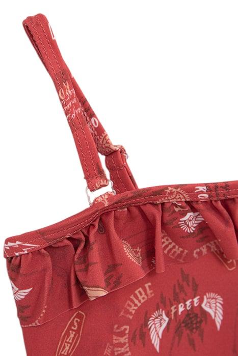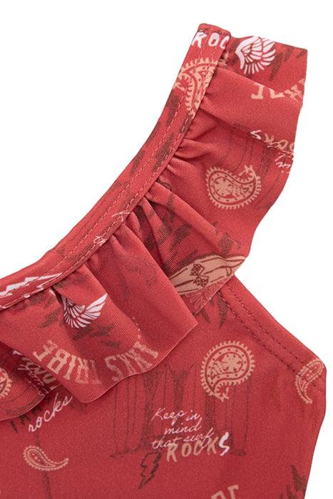 GIRLS’ RED SURF-ROCK PRINT SWIMSUIT