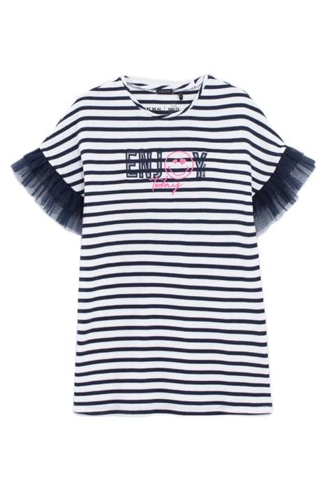 GIRLS’ SAILOR-STRIPE COTTON DRESS, SMILEYWORLD TULLE SLEEVES