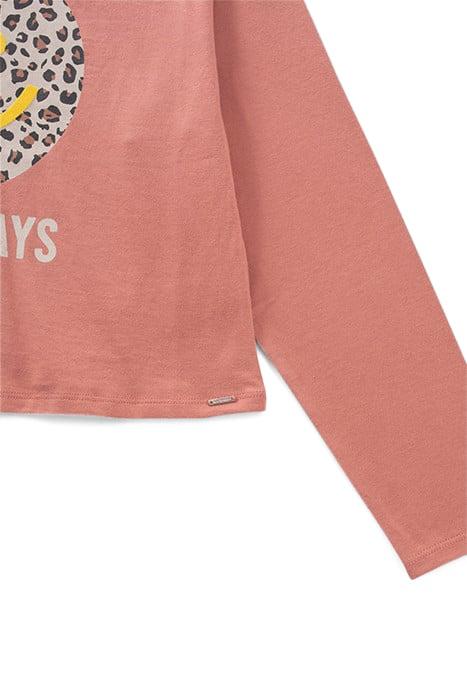 GIRLS’ TERRACOTTA T-SHIRT WITH SMILE ON LEOPARD BACKGROUND
