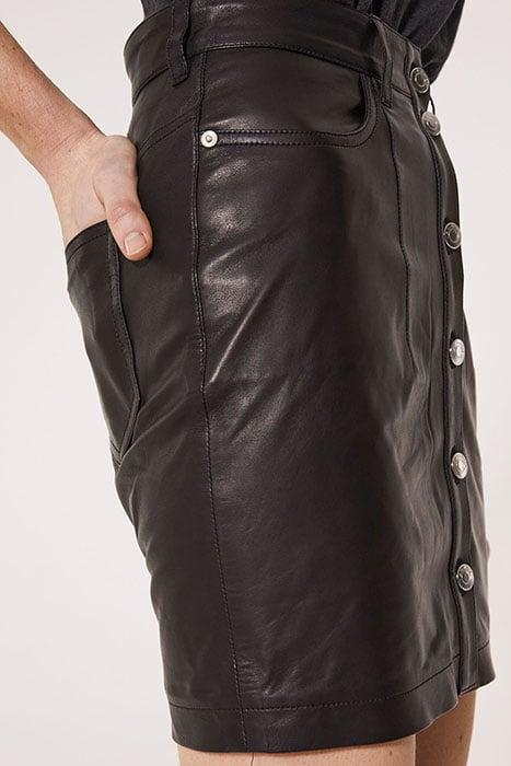 • WM31GONIA-BLA01• Mini skirt• Full grain lambskin leather• Soft touch• Slim cut• Buttons closure• 100% Lambskin• Made in Turkey