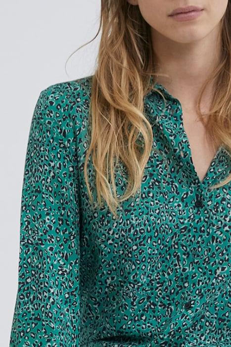 Swap a formal white shirt for a printed shirt- Invite leopard print onto a green background to wake up your wardrobe.