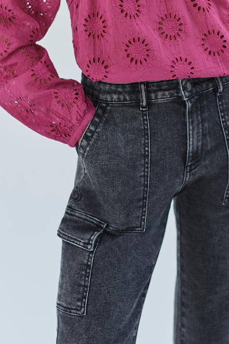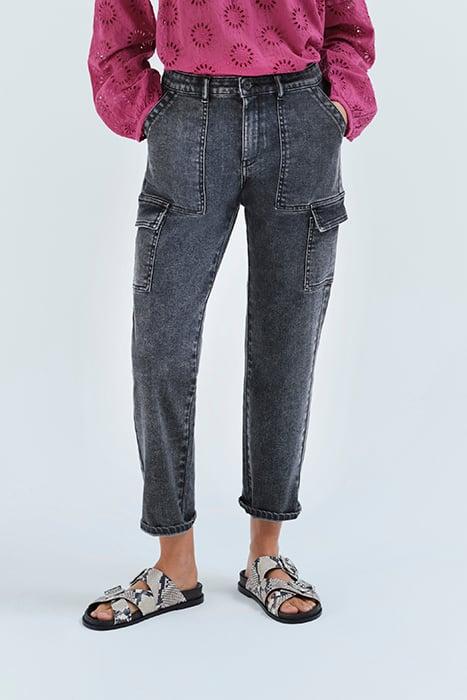 GREY CROPPED COMBAT JEANS WITH FLAP POCKETS