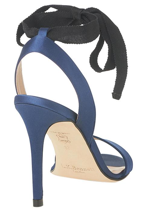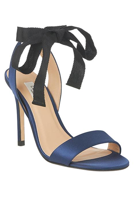 Crafted from luxurious navy blue satin and a black grosgrain ribbon, Helia is an understated pair of evening sandals. In a chic and simple design, Helia features a single strap over the toes, stiletto heels and ties around the ankle with the stylish ribbon.