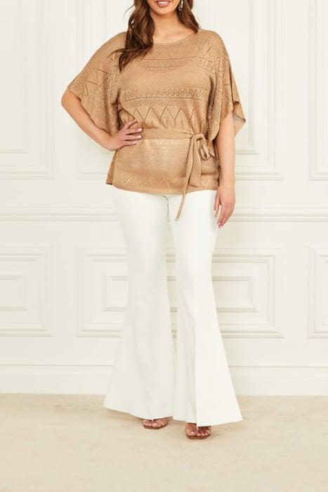 Elevate your wardrobe with the Hydra Top Kimono Swt Khaki Knitted Sweater Tan, a statement piece designed for modern elegance.
