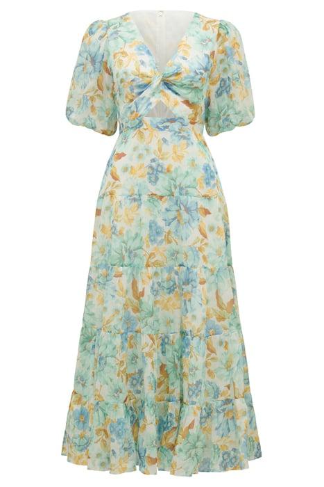 IRINA TWIST FRONT MIDI DRESS BLUE ELMHURST FLORAL