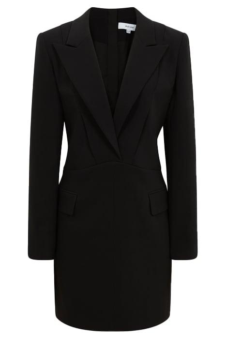 Give Occasion Looks A Heritage Feel With The Karin Mini Dress. The Padded Shoulders And Peak Lapels Take Inspiration From 1930'S Styling - The Golden Age Of The Tuxedo. It Features A Plunging V-Neckline And Is Cut To A Mini Length For A Dramatically Feminine Look. Simply Style With Heels To Gather All The Compliments.