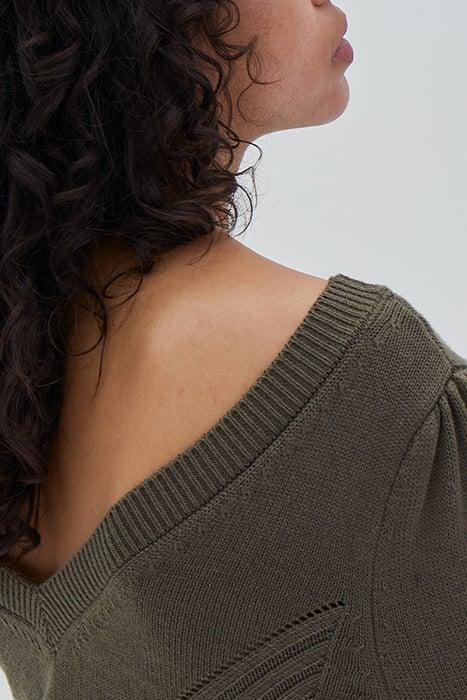 KHAKI CHEVRON STITCH KNIT SHORT DRESS