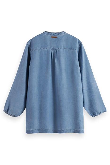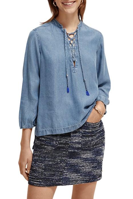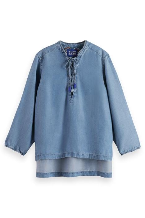 LACE UP DENIM WASHED INDIGO TENCEL SHIRT INDIGO